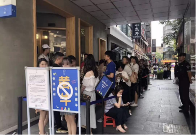 现场的排队人流,据目测,已经达到了近200米。虽然店家为了防止黄牛抢占位置,明确规定了拿到奶茶的时候必须先在工作人员面前喝一口,但由于粉丝的痴迷,现场依旧少不了黄牛的身影。